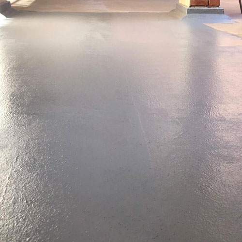 Luego de la impermeabilización del suelo, se aplicó el producto 100% poliuretánico, a razón de 1/2kg por m2, en una superficie total de 350m2 de estacionamiento.